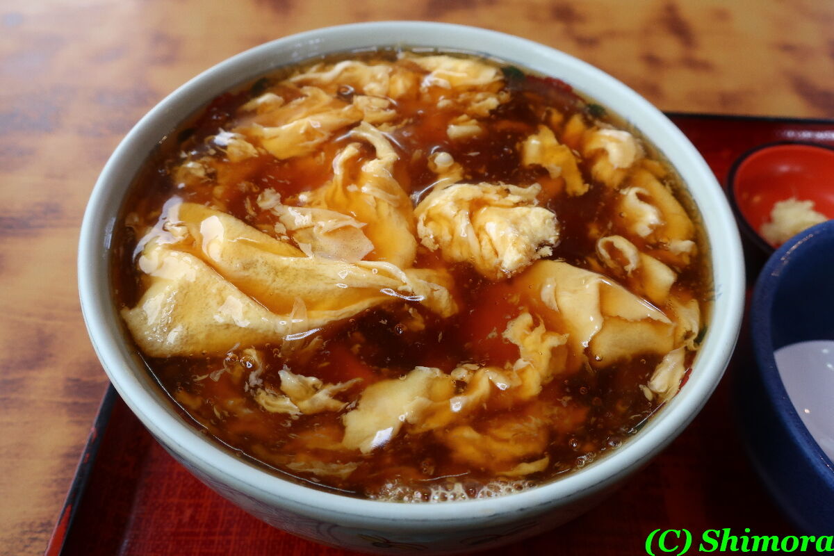 さて、かき玉そばですが、何度か紹介していますように、熱々の餡かけとなっていまして、薬味は生姜。