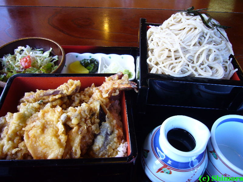 今回も、セットものの中から、ここでは定番になりつつある天重セットを冷たい蕎麦の大盛りでオーダー。