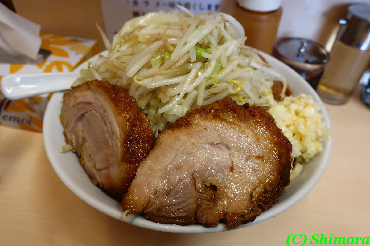 さて、今回もいつものラーメンに、トッピングも野菜、ニンニク。