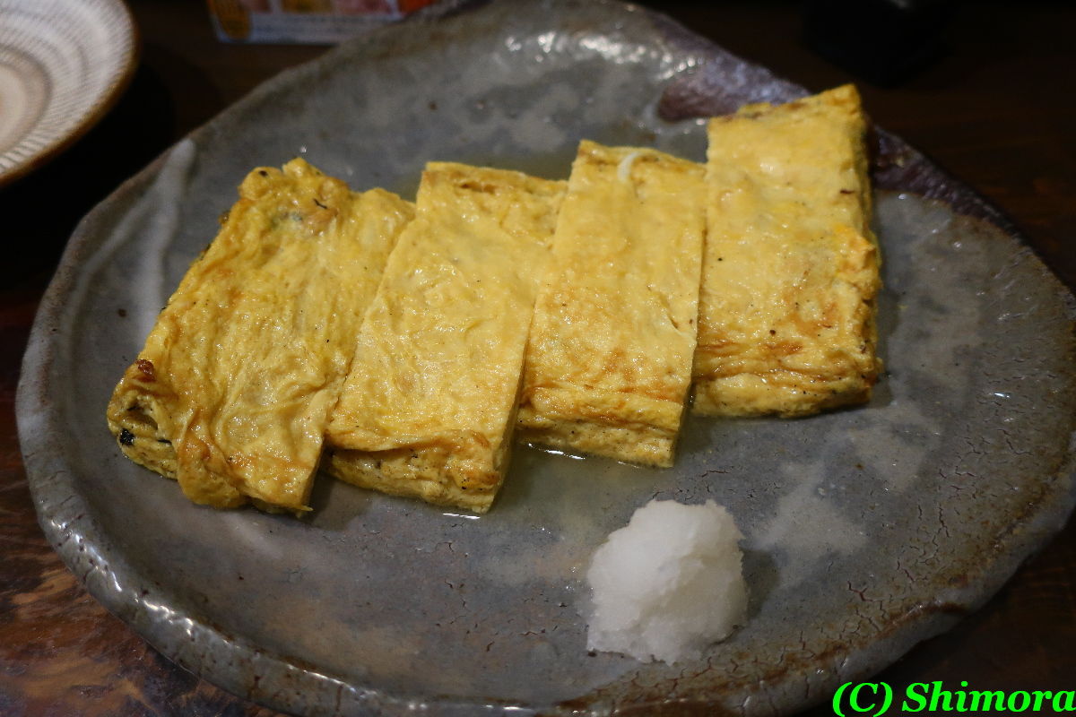 まずはだし巻きから提供されまして、このだし巻きが熱々のふわふわが美味しいんですよ。