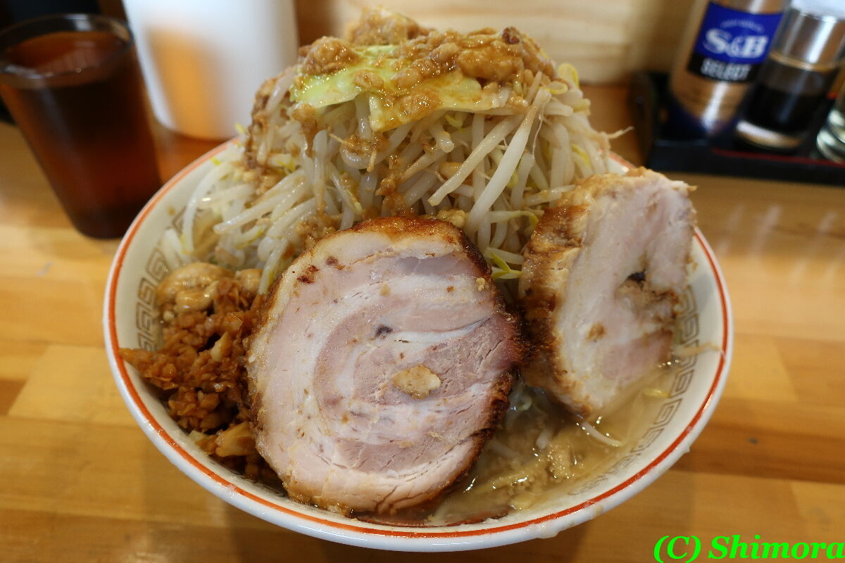 こちらでは、トッピングは食券を渡す際に聞かれまして、野菜増し、ニンニク増しにして後は普通にしました。