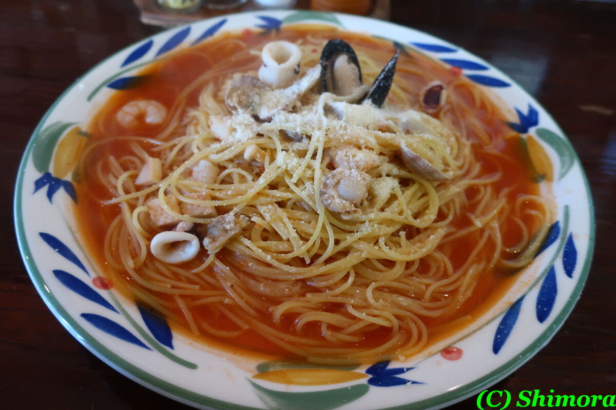 ペスカトーレは、トマトベースのソースに、エビ、イカ、貝類の具材でして、具材の量はあまり多くないですが、魚介の出汁がでたソースは結構良いですね。