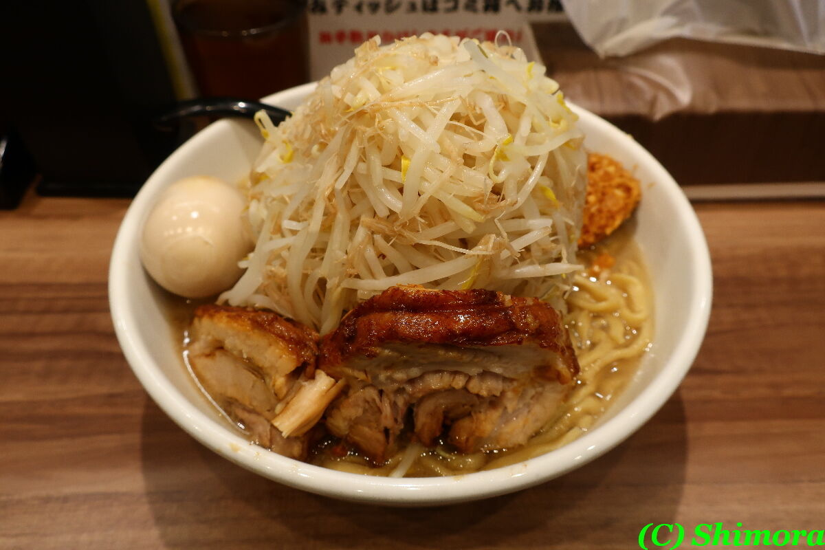 それに味玉を追加して、トッピングもいつもの「野菜増し、ニンニク増し、脂抜き」