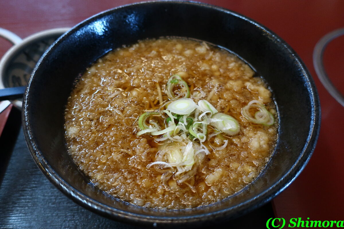 何度も紹介していますメニューですので、お馴染みだと思いますが、熱々濃いめのかけつゆに、天かすの甘みがプラス。