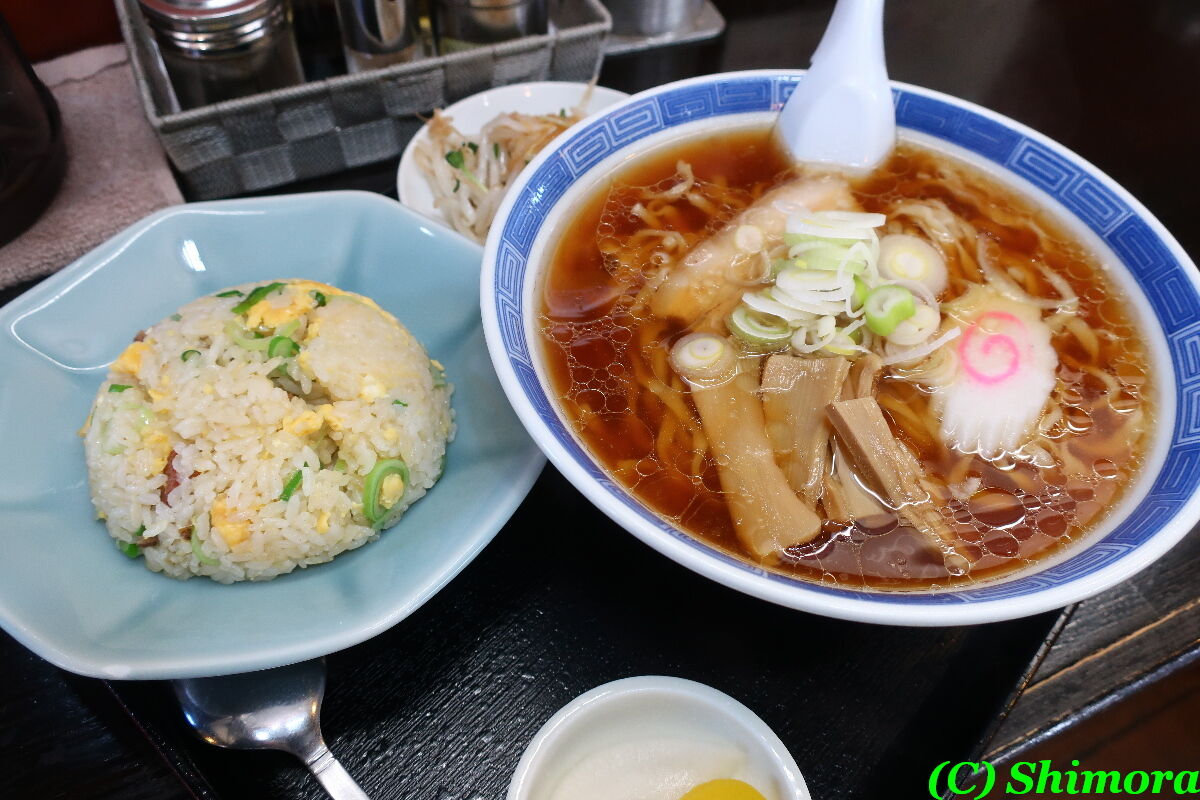 チャーハンセットは、ラーメンに半チャーハンとサラダ、お新香が付いたセットになります。